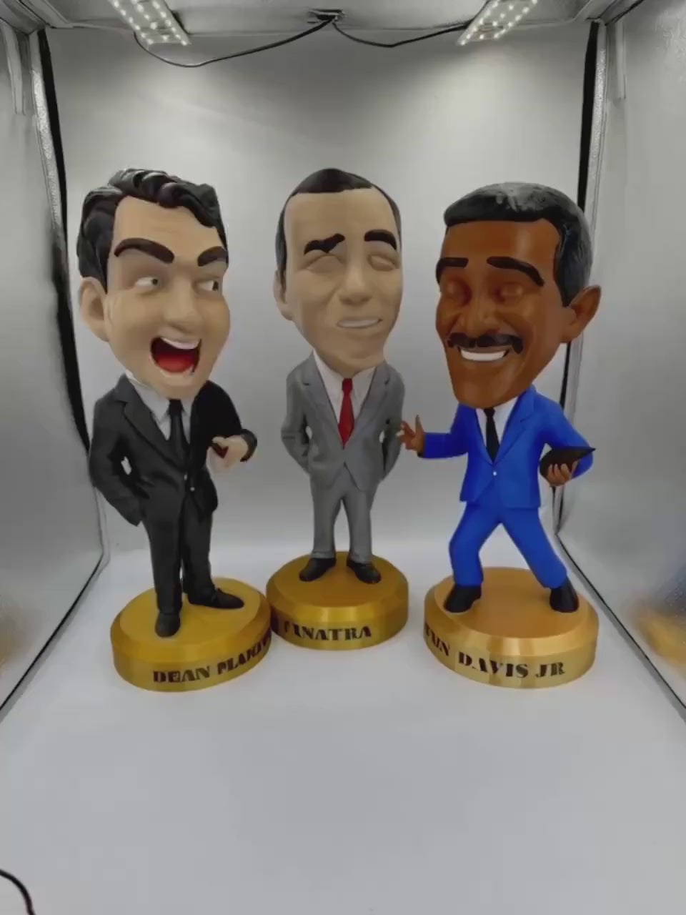 "Introducing our exclusive Rat Pack 3D-Printed Statue Set, the ultimate addition for any home theater or movie enthusiast. This collection features stunning 17-inch tall, 6-inch wide statues of Frank Sinatra, Dean Martin, and Sammy Davis Jr., crafted with high-quality filament. Each piece captures the essence of these legendary performers, making this trio a must-have for Rat Pack fans and lovers of classic entertainment. Bring a touch of vintage Vegas glamour to your space with this iconic set.